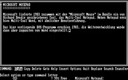 1983 stellte Microsoft Multi-Tool Notepad sowie die erweiterte Version Multi-Tool Word für MS-DOS vor. Multi-Tool Notepad wurde im Bundle mit einer Microsoft Mouse verkauft.[1] Die beiden Programme unterschieden sich vom Funktionsumfang her: Notepad diente der einfachen Bearbeitung von Textdateien, Word hingegen bot umfangreichere Textverarbeitungswerkzeuge an. Abgesehen davon waren beide Programme von der Bedienung her gleich, beide konnten mit der Maus bedient werden.