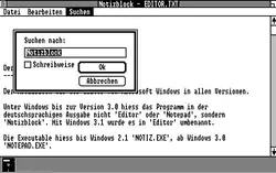 Unter den 16-Bit-Betriebssystemen bis einschließlich Windows 3.1 wurden Dateien größer als 45 kB im Nur-Lese-Modus geöffnet, Dateien größer als 54 kB konnten gar nicht geöffnet werden.[3] Unter Windows 95, 98 und Me konnte der Editor keine Dateien größer als 64 kB öffnen.[4]
