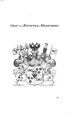 - ↑ Hatzfeldt. In: Maximilian Gritzner (Bearbeitung): J. Siebmacher’s grosses und allgemeines Wappenbuch. Erster Band, dritte Abteilung, dritte Reihe A: Die Fürsten des Heiligen Römischen Reichs A.–L. Verlag von Bauer & Raspe (E. Küster), Nürnberg 1887, S. 95 (Google Books)
