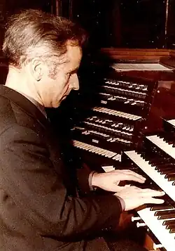 Noch vor dem Umbau der Orgel in der Hofkirche nahm er eine Schallplatte auf, um den ursprünglichen Klang des Instruments festzuhalten. Als Konzertorganist bestritt er viele Orgelkonzerte im In- und Ausland, so auch in Luzern im Rahmen der Internationalen Musikfestwochen.[9] 1957, also fast zu erster Stunde, wurde Eduard Kaufmann Mitglied der Luzerner «Festival Strings Lucerne».[10] Hier spielte er vorwiegend Cembalo, gelegentlich Orgel. Mit diesem Kammerorchester unternahm er viele Konzertreisen durch die Schweiz wie auch ins Ausland, z. B. nach Wien, Prag, Athen, London,[11] Edinburg, Salzburg, München, Stockholm oder Dubrovnik. Die Konzerttätigkeit führte die Festival Strings nach Deutschland, Frankreich, Finnland, Schweden und Norwegen, aber auch nach Nordamerika, Kanada, Kuba, Japan sowie das damalige Rhodesien und Südafrika. Eduard Kaufmann blieb dem Ensemble, mit welchem er auch mehrere Schallplatten aufnahm, bis 1983 treu.