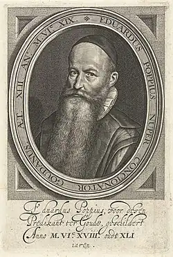 Eduard Popius, der an der Universität Leiden Theologie studiert hatte, gehört zu einer Gruppe jüngerer reformierter Geistlicher, die stark durch Jacobus Arminius beeinflusst wurden. Seine erste Pfarrstelle trat er 1599 in Amstelveen an; ab 1607 war er Pfarrer in Gouda. Er gehörte 1610 zu den ersten Unterzeichnern der sogenannten Remonstrantie. Auf der Dordrechter Synode, zu der er 1618 vorgeladen wurde, verteidigte er die Theologie der Remonstranten, bis diese Gruppe Anfang 1619 von den Beratungen ausgeschlossen wurde. Er gehörte zu den Direktoren der Remonstrantischen Bruderschaft. Wie andere Remonstranten wurde Popius nach der Verurteilung ihrer Lehre in Dordrecht des Landes verwiesen. Er kehrte aber heimlich nach Gouda zu seiner Gemeinde zurück. Popius vertrat aktiv die Anschauungen des Arminius und kritisierte die Lehrregeln von Dordrecht, die seiner Meinung nach das Evangelium wirkungslos machten. Der Stadtrat von Gouda setzte 1621 eine Belohnung von 300 Gulden für die Verhaftung des Popius aus, zusätzlich zu der Prämie, die die niederländische Regierung bereits ausgelobt hatte. Nach zwei Jahren im Untergrund wurde Popius dann zusammen mit Carolus Niellius in Haarlem verhaftet. Den Rest seines Lebens verbrachte Popius als Gefangener in der Festung Loevestein. Es blieb ihm erspart, unter der Folter als möglicher Mitwisser einer Verschwörung gegen Moritz von Oranien verhört zu werden. Nach der Hinrichtung ihres Vaters Johan van Oldenbarneveldt planten dessen Söhne Reinier und Philipp 1619 einen Anschlag auf den Statthalter, der aber misslang. In diese Verschwörung waren auch remonstrantische Pfarrer, darunter Hendrick Danielsz Slatius, einbezogen.