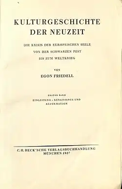 - Kulturgeschichte der Neuzeit. Die Krisis der europäischen Seele von der schwarzen Pest bis zum Weltkrieg. 3 Bde. Beck, München 1927–31. archive.org