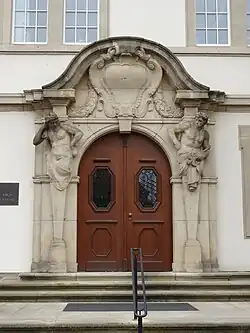 Das dreieinhalbgeschossige Bauwerk ist ein typischer Vertreter des Traditionalismus mit Anklängen an die zur Bauzeit übliche neobarocke Architektur der ausgehenden Jugendstilzeit. Unterbrochen wird die helle Putzfassade mit ihren strengen Fensterachsen durch zwei wuchtige Risalite und ein Zwerchhaus. Einziger Schmuck des schiefergedeckten Gebäudes sind die Gesimse aus hellem Naturstein und das üppig gestaltete Portal mit Atlanten von Augusto Varnesi.