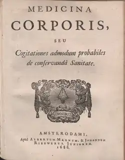 - Medicina mentis et corporis. 1. Teil gewidmet Ludwig XIV. Amsterdam 1686.
