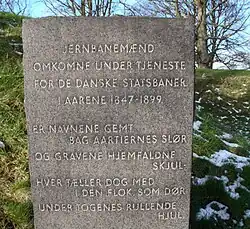 Gedenktafeln erinnern an die Beschäftigten der Danske Statsbaner (DSB) (deutsch Dänische Staatsbahnen), die im Staatsdienst umgekommen sind, unter anderem an die 280 Bediensteten, die zwischen 1899 und 1924 verunglückten. Nach dem Zweiten Weltkrieg wurde die Gedenkstätte mit einem Denkmal für Eisenbahnarbeiter erweitert, die ihr Leben während der deutschen Besatzungszeit zwischen 1940 und 1945 im Kampf gegen die Besatzungsmacht verloren.