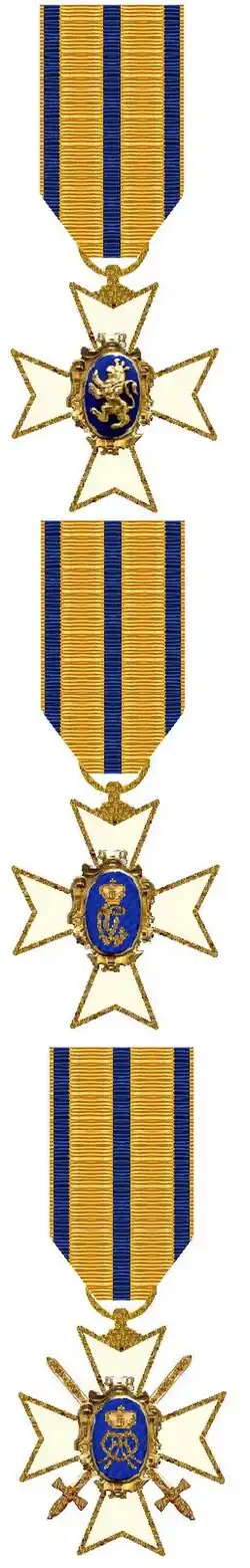 Für Verdienste in Kriegszeiten wurde der Orden mit gekreuzten Schwertern durch die Kreuzwinkel verliehen.