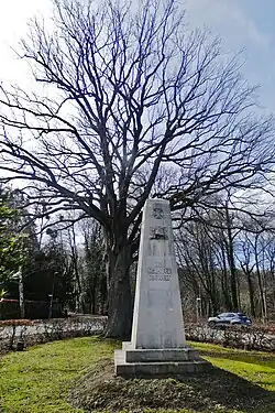 Beim Gedenkstein der Völkerschlacht bei Leipzig steht eine Stieleiche. Der Landkreis Hannover erklärte den damals 22 m hohen Baum im Oktober 1992[2] als „ortsbildprägende Eiche, die auf Grund ihrer Seltenheit und Schönheit zu schützen ist“ zum Naturdenkmal. Es wird von der inzwischen für die Aufgaben der unteren Naturschutzbehörde zuständigen Region Hannover[3] unter der Nummer ND-H 192 gelistet.[4]