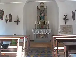 Für 1876 ist eine „Kirche“ in Eibach erwähnt.[25] Die heutige Ortskapelle, ein Sandsteinquaderbau mit Satteldach, Fassadenturmaufsatz mit Zwiebelhaube und mit eingezogener Chornische, wurde 1906 von der Gemeinde Patersholz im neobarocken Stil erbaut und 1907 ohne Zelebrationsrecht benediziert.[26] Die Ausstattung ist neugotisch; auf dem Altärchen steht eine Muttergottes mit Kind.[27]