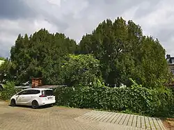 Naturdenkmal Eiben Tolkewitzer Straße 30, Ansicht an der rückwärtigen Zufahrt von der Berggartenstraße