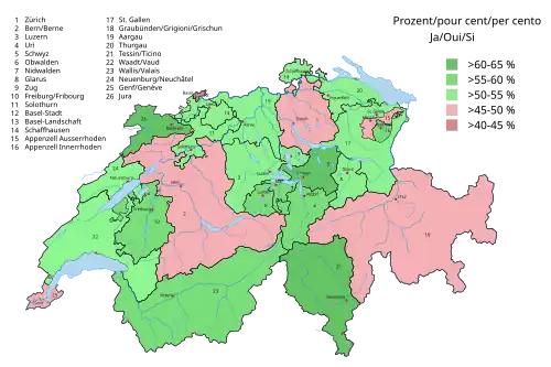 Das Schweizer Volk nahm die Initiative knapp mit 51,21 % Ja-Stimmen an. Die Wahlbeteiligung betrug 51,40 %. Bemerkenswert am Abstimmungsergebnis war dieses Mal, dass die sonst häufig zu beobachtende Trennung der «welschen» Westschweizer Kantone von der deutschsprachigen Schweiz aufgehoben war. Auch die französischsprachige Schweiz stimmte mehrheitlich für die Vorlage.[23]