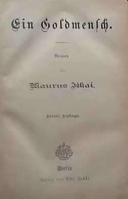 Der Schriftsteller Jókai schreibt später über den Roman ‚Ein Goldmensch‘ Folgendes: