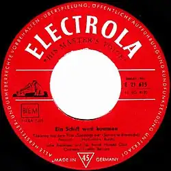 - ↑ Lale Andersen – Ein Schiff wird kommen / Manchmal träum ich vom Kornfeld – Electrola – Germany – E 21 615. 45cat.com, abgerufen am 9. Oktober 2019.