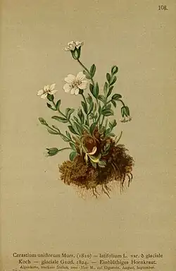 - ↑ Karol Marhold (2011): Caryophyllaceae. Datenblatt Cerastium uniflorum In: Euro+Med Plantbase - the information resource for Euro-Mediterranean plant diversity.