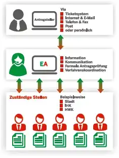 Die Verfahren und Formalitäten, die für die Ausübung und Aufnahme einer Dienstleistungstätigkeit notwendig sind, können elektronisch über den EA NRW abgewickelt werden. Hierzu steht auf dem Internetportal des EA NRW ein „Ticketsystem“ zur Verfügung.