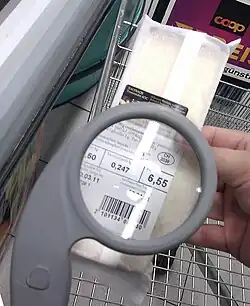 - Bei zusätzlich mit einem Mikroprozessor ausgestatteten Systemen[10] kann auch Warendiebstahl verhindert werden. Hier wird das Bremssystem am Eingang des Supermarktes über eine Funkschleife scharf geschaltet. Über eine weitere Funkverbindung registriert der Einkaufswagen an der Kasse, dass die Ware bezahlt wird. Nur ohne diese Registrierung blockiert die Bremse beim Überfahren der Funkschleife am Ausgang. Dabei wird zugleich ein Alarm ausgelöst. Das Supermarktpersonal kann die Bremse über eine Funkfernbedienung lösen.