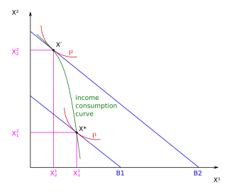 Man bezeichnet mit die Marshallsche Nachfrage nach den Gütern zu Preisen bei einem Haushaltseinkommen von y. Betrachte nun spezielle Marshallsche Nachfragen, die der Zusatzbedingung genügen, dass die Preise jeweils konstant gelassen werden, das heißt . Berücksichtigt man die Definition der Marshallschen Nachfrage, so bedeutet dies, dass also ein Güterbündel genau dann (und nur dann) auf der Einkommens-Konsum-Kurve liegt, wenn es ein positives Einkommen y gibt, mit dem gilt: