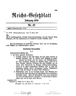 | Ursprüngliche Fassung vom: | 29. März 1920 (RGBl. S. 359) |