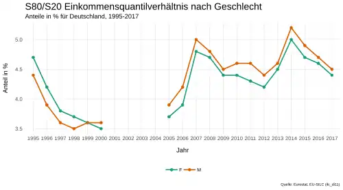 - ↑ EuroStat: S80/S20 Einkommensverhältnis nach Geschlecht
