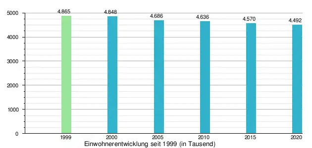 | 2000 | 4 847 600 | (4 765 657 nach Volkszählung von 2002) |