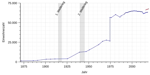 - ↑ a b Einwohnerzahlen nach Angaben der Stadt ( vom 25. März 2017 im Internet Archive)