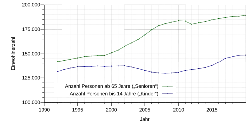 Die folgende Übersicht zeigt die Einwohnerzahlen nach dem jeweiligen Gebietsstand. Bis 1807 handelt es sich meistens um Schätzungen, danach um Volkszählungsergebnisse (¹) oder amtliche Fortschreibungen der Stadtverwaltung (bis 1970) und des Statistischen Landesamtes (ab 1971). Die Angaben beziehen sich ab 1834 auf die „Zollabrechnungsbevölkerung“, ab 1871 auf die „Ortsanwesende Bevölkerung“, ab 1925 auf die Wohnbevölkerung und seit 1987 auf die „Bevölkerung am Ort der Hauptwohnung“. Vor 1834 wurde die Einwohnerzahl nach uneinheitlichen Erhebungsverfahren ermittelt.