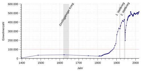 Die folgende Übersicht zeigt die Einwohnerzahlen nach dem jeweiligen Gebietsstand. Bis 1827 handelt es sich meist um Schätzungen, danach um Volkszählungsergebnisse (¹) oder amtliche Fortschreibungen der Stadtverwaltung (bis 1970) und des Statistischen Landesamtes (ab 1971). Die Angaben beziehen sich ab 1834 auf die „Zollabrechnungsbevölkerung“, ab 1871 auf die „Ortsanwesende Bevölkerung“, ab 1925 auf die Wohnbevölkerung und seit 1987 auf die „Bevölkerung am Ort der Hauptwohnung“. Vor 1834 wurde die Einwohnerzahl nach uneinheitlichen Erhebungsverfahren ermittelt.