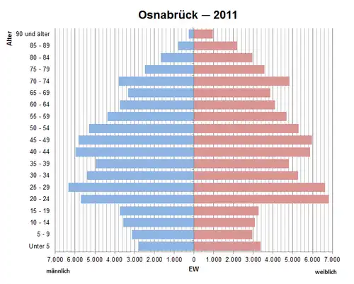 - ↑ Datenbank Zensus 2011, Osnabrück, Alter + Geschlecht
