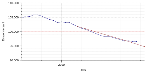 Die folgende Übersicht zeigt die Einwohnerzahlen nach dem jeweiligen Gebietsstand. Bis 1796 handelt es sich meistens um Schätzungen, danach um Volkszählungsergebnisse (¹) oder amtliche Fortschreibungen der Stadtverwaltung (bis 1970) und des Statistischen Landesamtes (ab 1971). Die Angaben beziehen sich ab 1840 auf die „Zollabrechnungsbevölkerung“, ab 1871 auf die „Ortsanwesende Bevölkerung“, ab 1925 auf die Wohnbevölkerung und seit 1987 auf die „Bevölkerung am Ort der Hauptwohnung“. Vor 1840 wurde die Einwohnerzahl nach uneinheitlichen Erhebungsverfahren ermittelt.