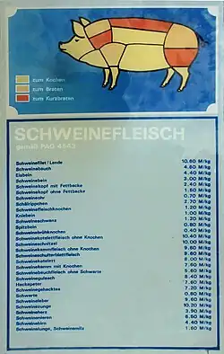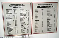 - 2,40 M 250 g Tafelbutter (Fettgehalt geringer als in der Bundesrepublik, bei noch geringerem Gehalt als „Landbutter“ bezeichnet)[4]