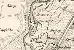 | Die Lage Eisenbüttels auf einer historischen Landkarte um 1714–1750 |
