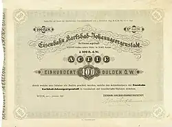 - ↑ Historische Wertpapiere: Eisenbahn Karlsbad–Johanngeorgenstadt. Archiviert vom (nicht mehr online verfügbar) am 27. Februar 2021; abgerufen am 24. Februar 2021. Info: Der Archivlink wurde automatisch eingesetzt und noch nicht geprüft. Bitte prüfe Original- und Archivlink gemäß Anleitung und entferne dann diesen Hinweis.