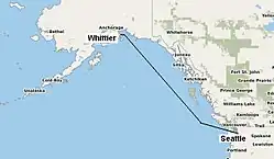 Die Eisenbahnfährverbindung Seattle–Whittier ist mit rund 1400 Seemeilen die weltweit längste Eisenbahnfährverbindung.