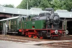 Waldbröl Privatbahndampflok, Preußischer T3 ähnlich 1914 in Aufarbeitung (HU) OVAG auf der Kleinbahn Bielstein–Waldbröl Zuglok Bergischer Löwe