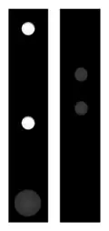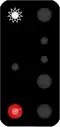 Erlaubnissignal Ein lotrechter weiß leuchtender Balken auf schwarzem Grund der gegebenenfalls durch einen oder zwei weiß leuchtende Punkte ergänzt wird.