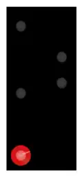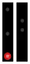 Wenn nur ein Gruppenhauptsignal vorhanden ist, gibt ein leuchtender weißer Balken an, auf welches Gleis sich der Freibegriff bezieht. Weiße Punkte stehen für Hauptgleise, für die der Hauptsignalbegriff nicht gilt.