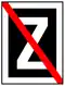 Zustimmung entfällt Ein weißes Z in einem schwarzen Rechteck mit weißem Rand und einer roten Linie von links oben nach rechts unten.