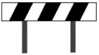Eine senkrecht stehende, abwechselnd waagrecht rot und weiß gestreifte Tafel, die am oberen Ende zwei nach rechts steigende schwarze Streifen auf weißem Grund trägt.
