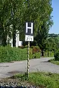 Haltepunkt Rechteckige schwarze Tafel mit weißem H