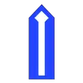 Zusatzpfeil Ein weißer Pfeil auf blauem Grund, senkrecht nach oben oder waagrecht nach links oder rechts zeigend.