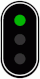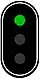 Grün: Erlaubt die Vorbeifahrt am Signal als große Bewegung, ein ggf. folgendes Signal zeigt ebenfalls einen Fahrtbegriff für große Bewegungen (grün, grün-gelb-horizontal, grün-gelb-vertikal) an und eine Reduzierung der Geschwindigkeit ist daher nicht erforderlich. | oder |