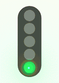 ein grünes und ein gelb blinkendes Licht (80 Wiederholungen pro Minute)