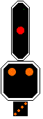 - Ein leuchtender Hinweispfeil nach rechts oder links zeigt eines zweier Gleise an, welchem die Zustimmung zur Fahrt gilt.