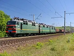Eine dreifach gekuppelte Lokomotive der Baureihe ВЛ80с, wie sie vor dem Güterzug lief