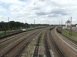 Der Zug Ь 38, Уголек („Ugolek“), war auf der mehrgleisigen Strecke in der Gegenrichtung von Kiew nach Donezk unterwegs, gezogen von der ЧС4-071.