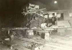 Die zerstörten Eisenbahnwagen des Eilzugs