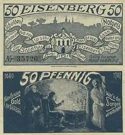 - ↑ Stadt Eisenberg, Thüringen (Hrsg.): Eisenberg - Bilder einer alten Stadt. GLAUX Verlag Christine Jäger, Jena 1995, ISBN 3-931743-04-7, S. 9.
