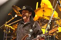 Lemmy Kilmister mit Eisernem Kreuz auf dem Gitarrengurt