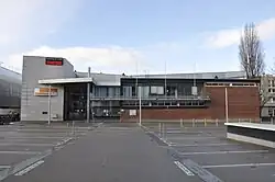 ![]() Außenansicht des Wintersportpalasts (rechts im Bild) |