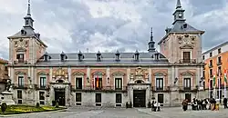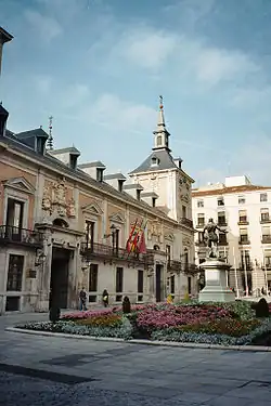 Der Palacio de Santa Cruz liegt an der Plaza de Santa Cruz. Der Palast wurde zwischen 1629 und 1643 erbaut. Charakteristisch für die habsburgische Architektur ist die rote Fassade mit weißlich-umrahmten Fenstern und ähnelt dem Stil der Plaza Mayor. Das Gebäude hat zwei markante Ecktürme mit spitzem Dach. Ursprünglich war das Gefängnis Cárcel de la Corte dort untergebracht. Hier verbrachten Verurteilte die Zeit bis zu ihrer Hinrichtung auf der Plaza Mayor. Ein berühmter Gefangener war der Bandit Luis Candelas, eine Art spanischer Robin Hood. Er wurde im November 1837 hingerichtet.