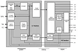 • Hocheffiziente Erzeugung der für den Betrieb der Wanderfeldröhre benötigten Hochspannungen aus der variablen, potentialfreien und wesentlich niedrigeren Eingangsspannung.